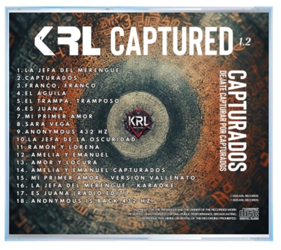 The songs explore profound themes: from inner struggle (“Franco, Franco, el Hacker Digital”) to intense relationships (“La Jefa del Merengue”) and the quest for freedom (“Capturados” feat. Ramón Cortez). Each track is a chapter in a larger story, where KRL shares not only personal experiences but also reflections on power, vulnerability, and destiny.